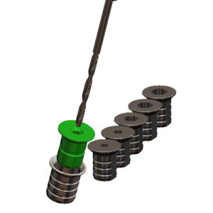 der jeweils passenden Bohrhülse (Innenhülse) geführt werden. Die Innenhülse wird hierzu einfach in die Außenhülse gesteckt